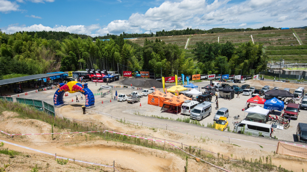 日曜日も、朝から快晴。梅雨はどこへ行った?と言いたくなるほどの青空が広がった。朝から試走には長い列ができ、最終的には20本近く走ったという強者も。どんどん乾く路面は、すでにホコリっぽい。「濡れて滑るのと、乾いて滑るのは全然違う。昨日と今日じゃ、違うコースだと言ってもいいくらい変わっている。」とは、SRAMPARK管理人の波多野さんの談。
